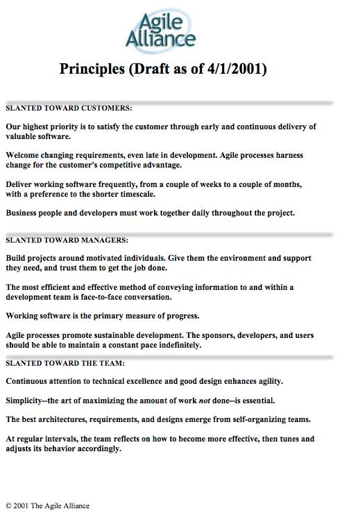 Dalam sebuah post di sosial media, salah satu pencetus Agile memberikan informasi mengenai kapan Agile sebaiknya digunakan. Ada beberapa kriteria yang sebaiknya dipenuhi oleh Customer, Manager & Team untuk memastikan Agile dapat diadopsi dengan baik, di antaranya:
